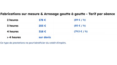 Je réalise mais je ne fournis pas les matériels ou composants (tuyaux, goutteurs, bacs à compost, récupérateurs, etc). Je peux cependant vous aider à les choisir et à déterminer les quantités nécessaires.