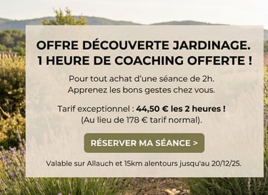 Objectif : apprendre les bons gestes, comprendre vos plantes, organiser et entretenir votre jardin comme un pro — directement chez vous, à Allauch, Marseille et alentours (offre limitée à une zone de 15km autour de Allauch - Le Logis Neuf)