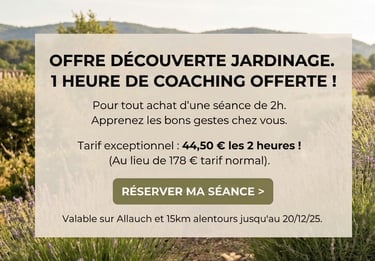 Objectif : apprendre les bons gestes, comprendre vos plantes, organiser et entretenir votre jardin comme un pro — directement chez vous, à Allauch, Marseille et alentours (offre limitée à une zone de 15km autour de Allauch - Le Logis Neuf)