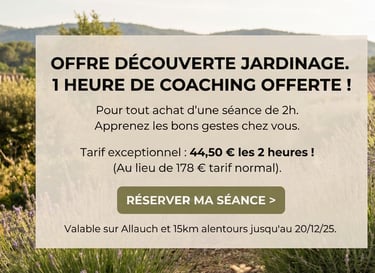 Objectif : apprendre les bons gestes, comprendre vos plantes, organiser et entretenir votre jardin comme un pro — directement chez vous, à Allauch, Marseille et alentours (offre limitée à une zone de 15km autour de Allauch - Le Logis Neuf)